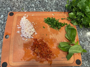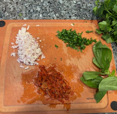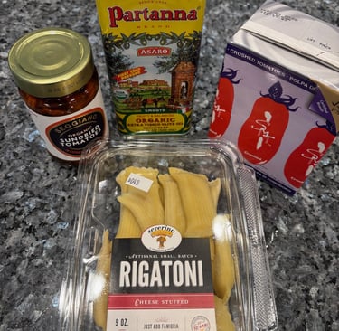 Add tomatoes: Stir in San Marzano tomato puree and simmer for 5 minutes. Mix in sun-dried tomatoes.