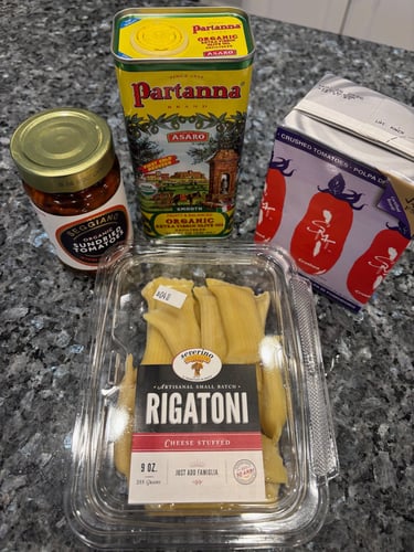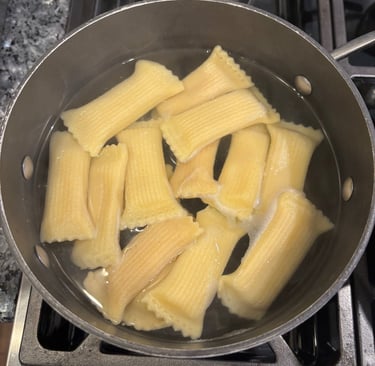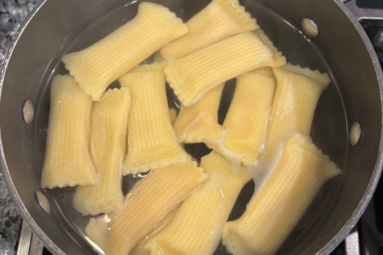 Cook the pasta: Bring a large pot of salted water to a boil. Add cheese-stuffed rigatoni and cook until al dente. Drain and set aside.