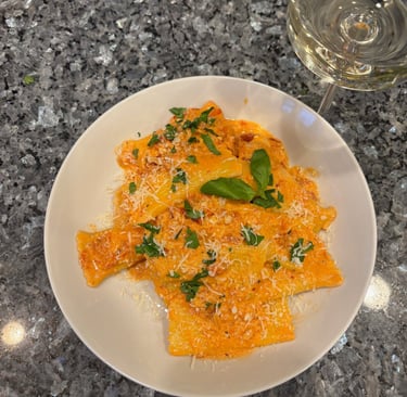 Serve: Plate the pasta and top with Parmigiano-Reggiano, Pecorino Romano, chopped parsley, and basil.