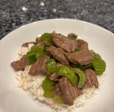 Return the cooked celery to the wok, toss to combine, and heat through. Serve hot over cooked white rice.